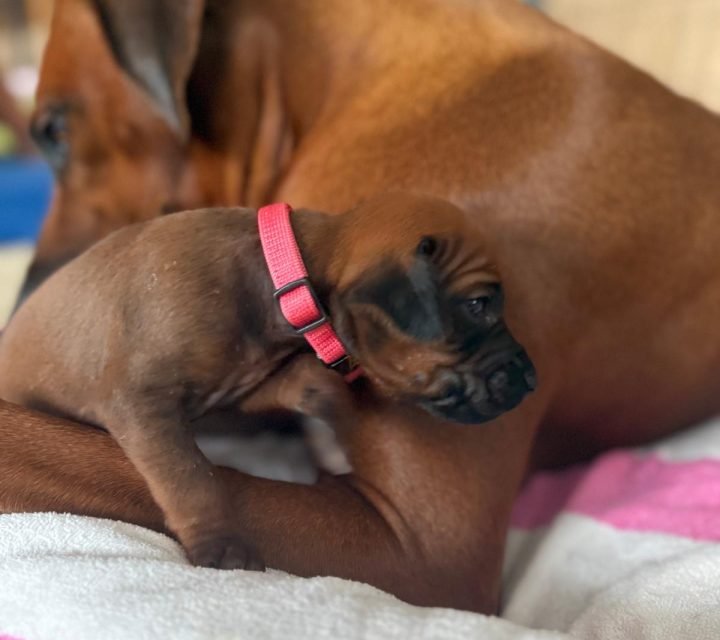 nur fรผnf Stunden sechs gesunde, bildschรถne, dunkel pigmentierte Welpen